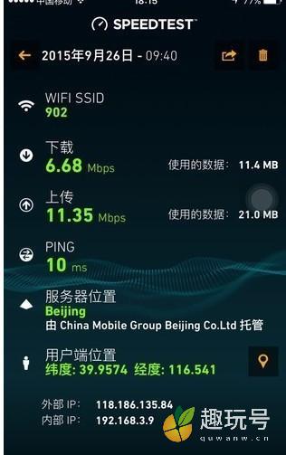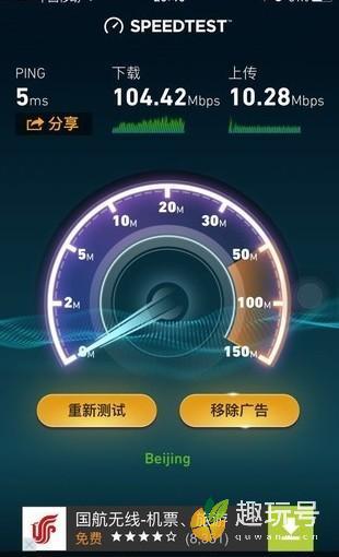 首先,是小编家里正在使用的X通宽带,办理的20M包年套餐,在2015年的宽带提速节日中,运营服务商给不要钱升到了50M。使用X通的应用,每月还阔以够享受特殊时长的100M提速,我们使用移动wap端设备iphone 6 Plus进行SpeedTest测试,分别测试50M和100M的宽带速率。测试结果能够令人满意,50M和100M的速率都已经超过标准值,表现应该说超级令人满意,没有掺水的行为。