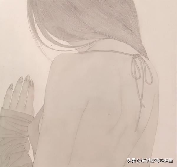 ▲刘瑶超写实人体画(局部)。 尤其她以自己为模特,画的人体,如人入梦,邂逅的仙境美人,给人耳目一新。无论正面、侧脸还是背影,还是回头的一瞥,都带着一种感伤,转瞬即逝,有着淡淡的忧伤和诗意。