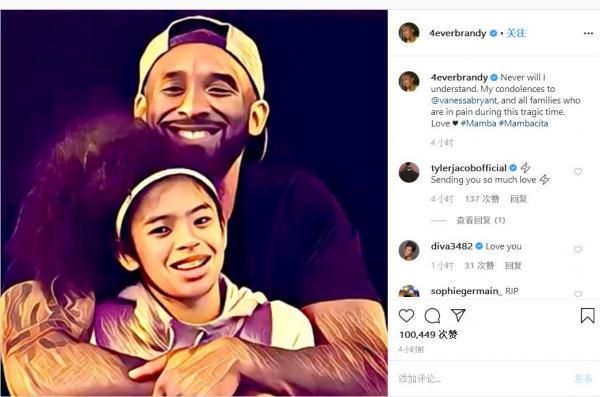 “我永远都无法明白过来。我要向瓦妮莎和所有在这起悲剧中承受悲痛的家庭表示哀悼。爱心献给曼巴和Mambacita(吉安娜外号)。”布兰迪在社交媒体上这样写道。
