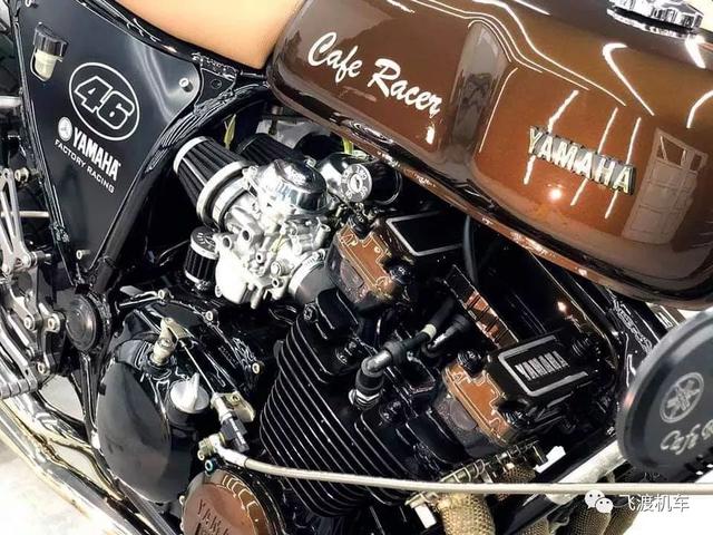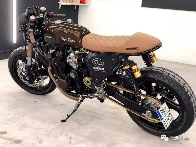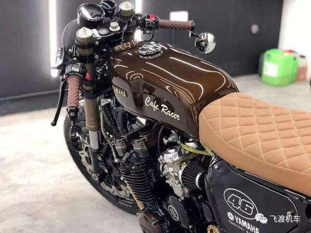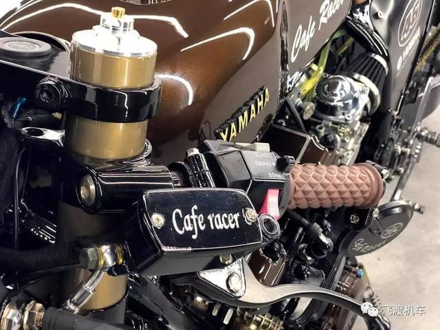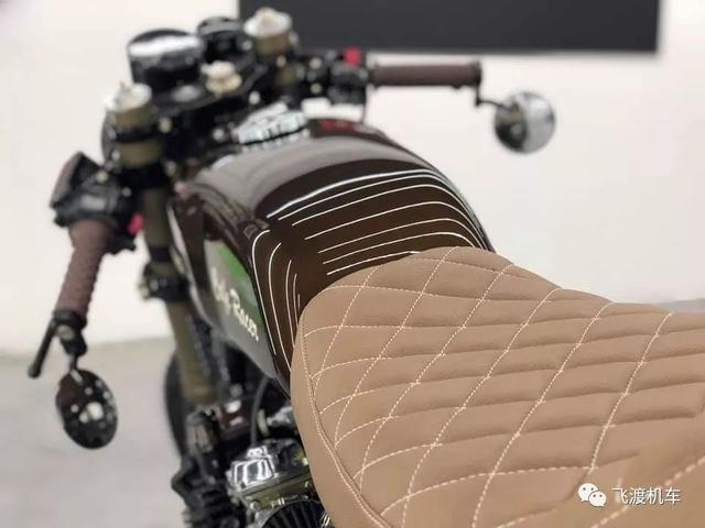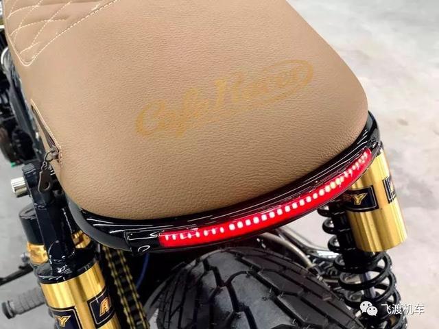 经典的Cafe车身比例,浓浓的咖啡色调,纤细优雅的油箱,还有菱形皮革坐垫,让这部车看起来如此优雅。