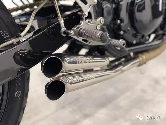双出排气尾段分别印着雅马哈和Cafe Racer,展示着她的双重身份。