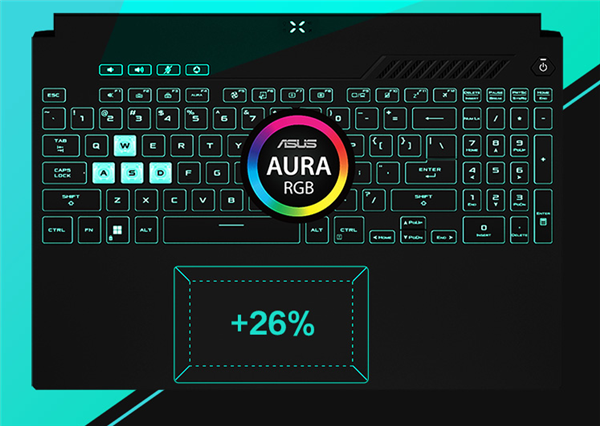 RGB炫彩影刃键盘保留WASD高亮透明胶键帽、数字小键盘、OverStroke闪击技术、2000万次敲击寿命的同时,左上角新增四个多媒体快捷键,方便控制音量、麦克风,另外触摸板面积增大了约26%。