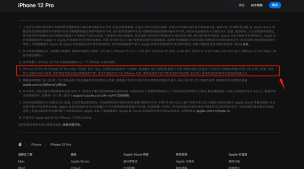 如此简单的描述,很难让消费者对iPhone 12 Pro的防水性能有很好的认识。