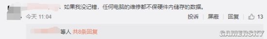 对于该用户的诉求,有网友表示支持,也有网友评论“论数据备份的重要性”、“任何电脑的维修都不保硬件内储存的数据”、“板载硬盘维修当然保修作废”……