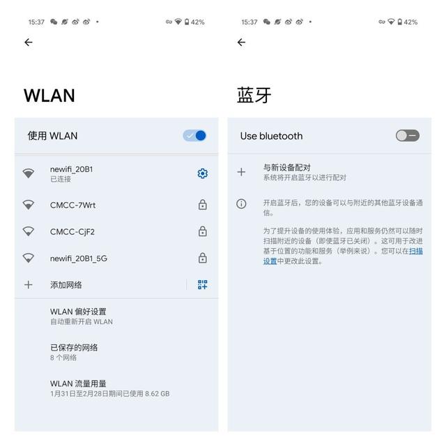 深色模式变得更偏灰了些,在方便开关和通知栏中可以就这样看出变化,但设置菜单里还没有变,猜测是还未完善。纯黑的背景其实观感上不一定好,很多第三方系统已经接受深色层级修改,期待 Android 12 也接受。