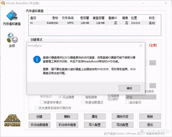 直接IO虚拟硬盘是为更快的访问速度而设计。它采用直接IO访问的方式,避免了大量的系统内部转换和处理时间,从而具有比SCS虚拟硬盘更高的数据传输率。不过直接IO虚拟硬盘只能被操作系统识别为逻辑硬盘,也可能无法被部分第三方磁盘工具软件识别。此外直接IO虚拟硬盘不支持ReadyBoost特性,也不支持VHD文件。(重要:请不要在直接IO虚拟硬盘上创建或依附VHD文件,否则导致蓝屏。)