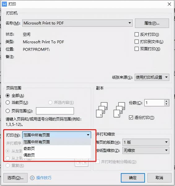 在下方可以选择打印范围中奇数页或者偶数页。