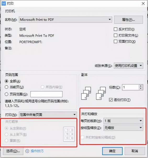 打印界面有打印机、页码范围、副本、并打顺序与缩放四个组成部分。